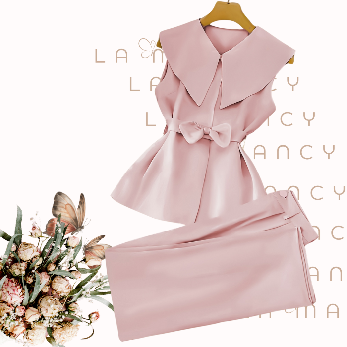 Transforme sua presença com o sofisticado conjunto Satin Rosé, feito de cetim rosa chá. A blusa sem mangas combina perfeitamente com a calça de corte impecável, enquanto a gola grande e o laço na cintura trazem um toque único de feminilidade, criando um look delicado e poderoso, ideal para mulheres que querem destacar sua essência.