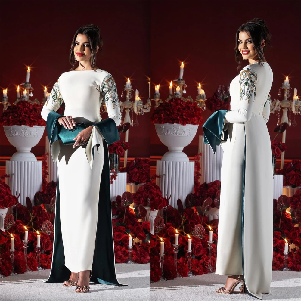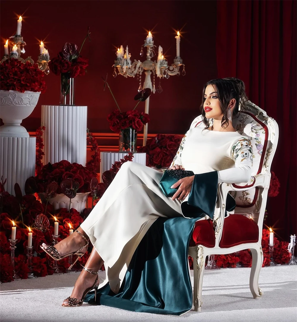 Um Vestido Bordado em Miçangas nas Mangas e Cauda Forrada Émeraude Royale
