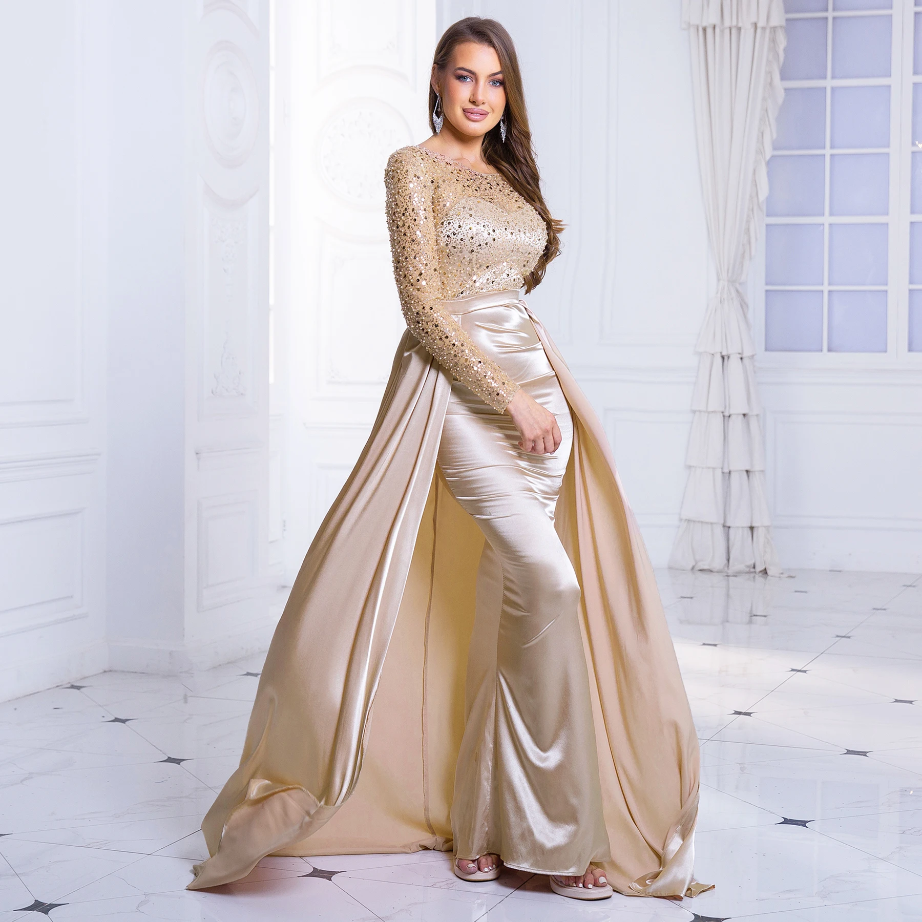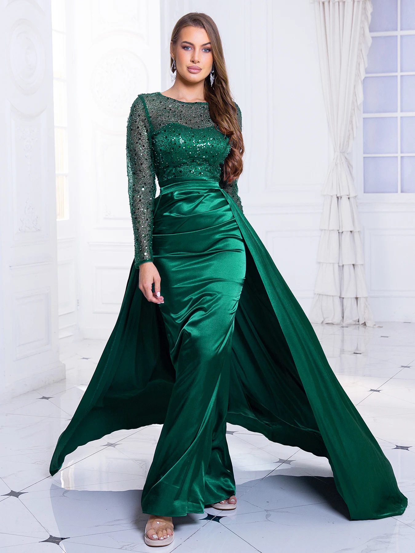 Um Vestido Maravilhoso em Paetê com Capa de um Ombro em Organza