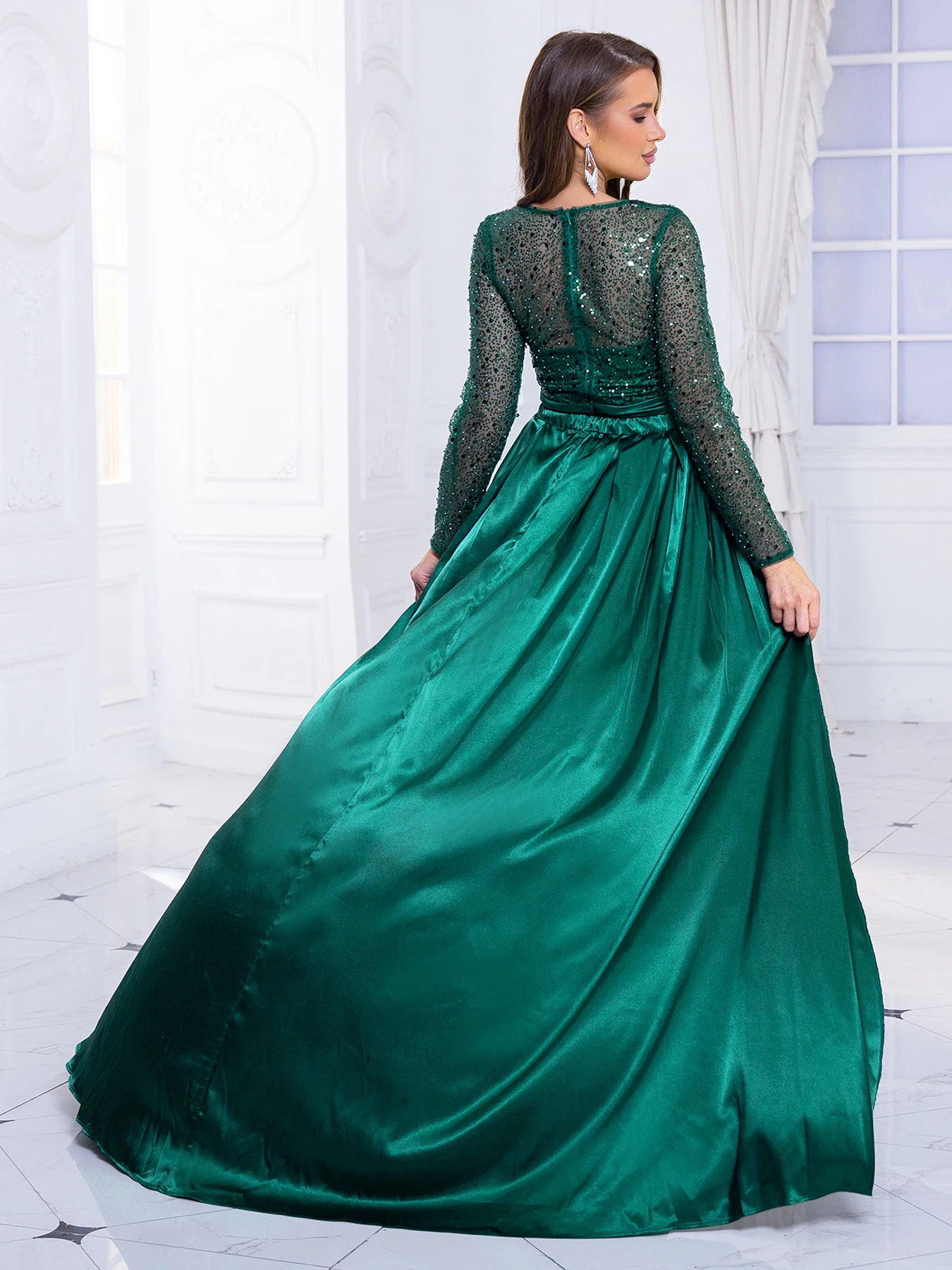 ✨Este vestido não é apenas uma peça de roupa, é uma história de charme e classe, bordada com brilho e envolta na suavidade do cetim✨