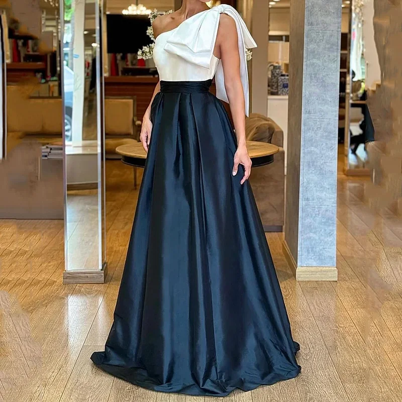 Um elegante decote em de um obro só com laço, proporciona um toque de sensualidade refinada.